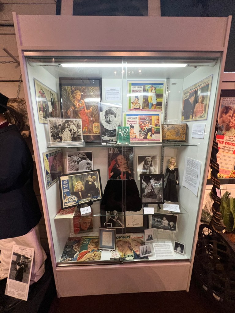 My husband and I are big history buffs as well as lovers of old films. We recently combined both of our passions and checked out the latest exhibit at the Hollywood Heritage Museum. The current exhibit is The Rise of Hollywood’s Leading Ladies. It features great costumes from many of the early female stars including May West, Lucille Ball, Betty Hutton, Dorothy Lamour and Claudette Colbert. Also, the show includes artifacts such as one of Greta Garbo’s designer handbags and Carol Lombard’s black veil – one of the few items that survived the TWA plane crash that killed her in 1942.