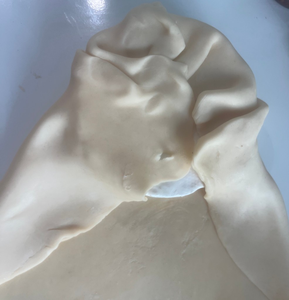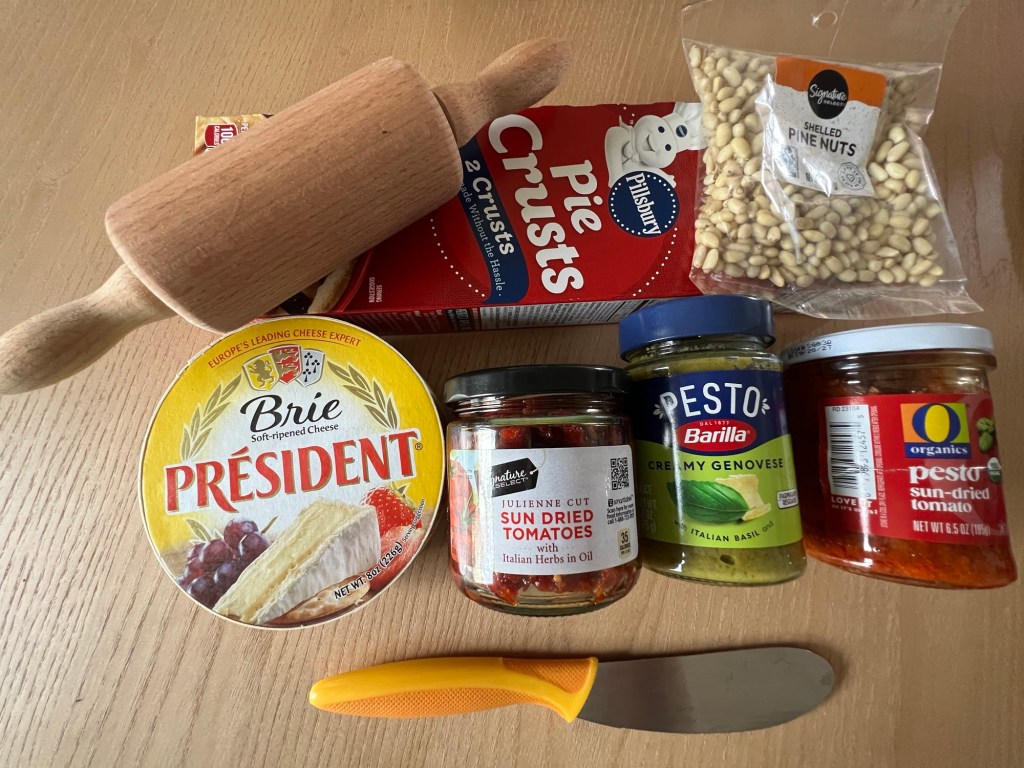 Prior to assembling, be sure to leave a roll of refrigerated Pillsbury pie crust out for 30 minutes to warm up. I have tried cheaper versions and they are not as good. Slightly warming the pie dough will make it much easier to handle. Also, preheat the oven to 400.