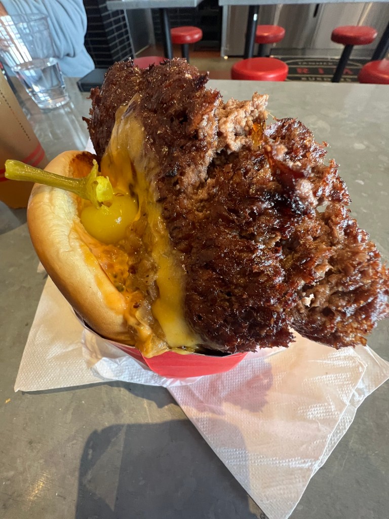 If I had to name the best burger I ever enjoyed, I would cite Maple & Motor in Dallas Texas. This shrine to hamburgers is located in a former gas station and has been featured on Diners, Drive-Ins and Dives multiple times. It is so popular that the owners, two neighbors who opened the place in 2009, do not allow customers to save tables until they have placed their order. The menu is limited to burgers and a few other options – keeping it simple and focused.
