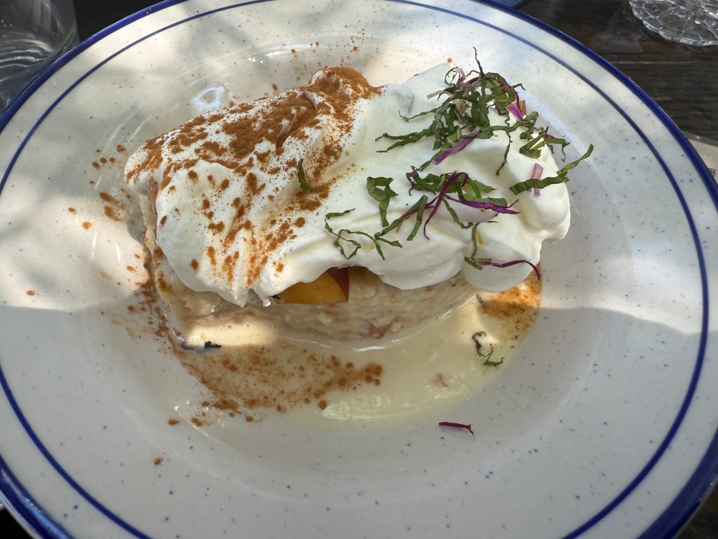 Dessert options are limited but fantastic. The tres leche cake was probably the best version I have ever eaten. It even came with tiny bits of fresh peach. Our friend ordered the flan with blueberries; it looked exquisite.