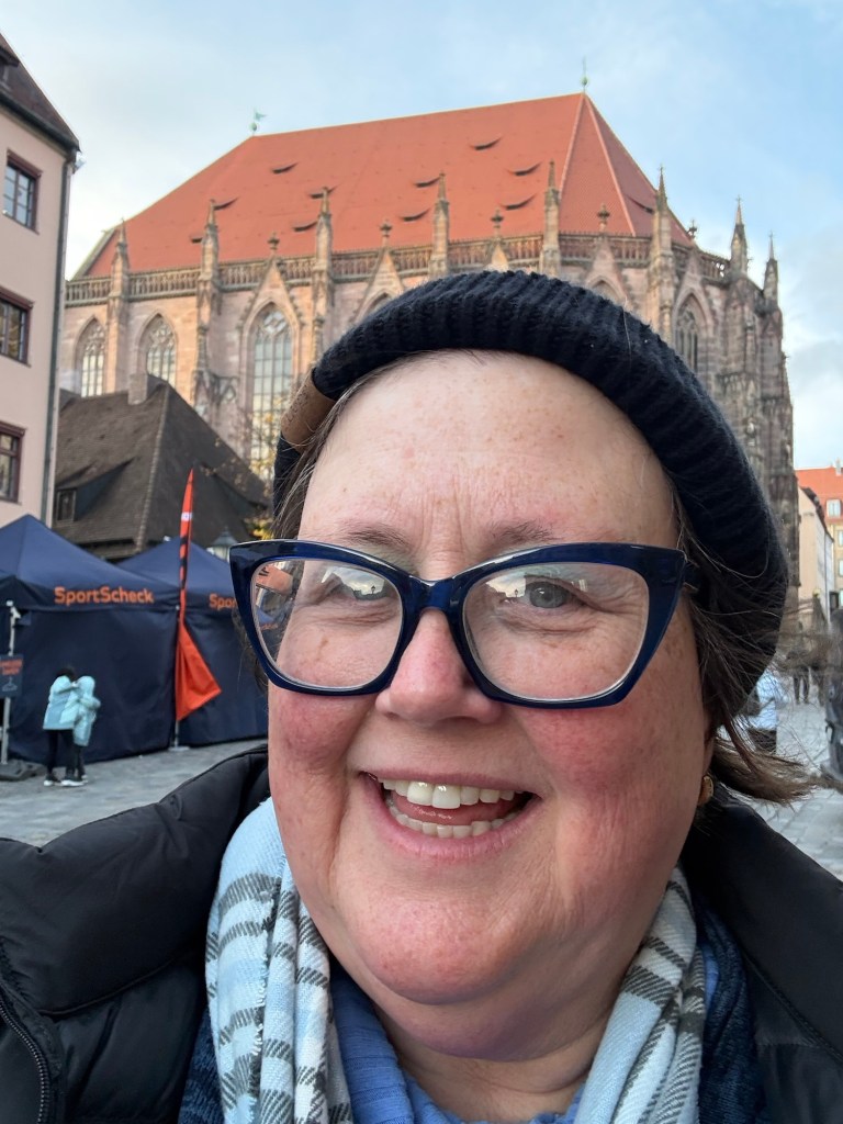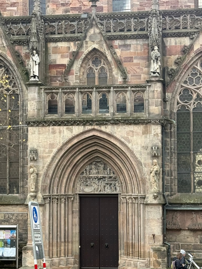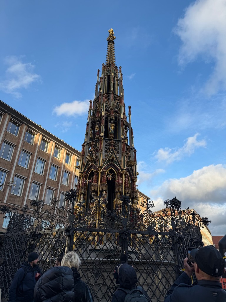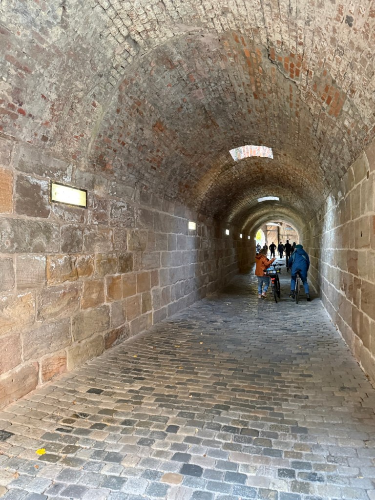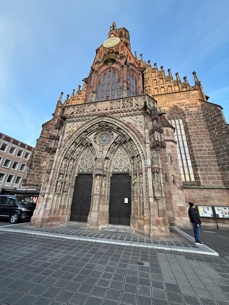 Luckily, we were able to take a tour of the places where the Nazis hid artwork during WWII, including stolen pieces. It was fascinating. Unlike the majority of Nuremberg’s buildings, these underground hiding spaces remained intact and safe from the bombings. One of the most miraculous things saved were all the stained glass windows from Saint Sebaldus. Much of the cathedral was damaged by the Allied bombing. After the war, the Germans rebuilt the cathedral and reinstalled the original glass panes.