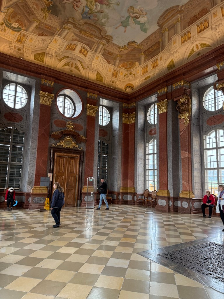 I loved all the genuinely old buildings of Wertheim but I also enjoyed seeing the local townspeople shop and interact with each other. We were lucky to be there for a Wednesday morning Market when several specialty merchants were there to sell produce, meats, seafood and other products such as olives. Business was brisk. The weather was nice so lots of locals sat in the outdoor cafes enjoying coffees and pastries, too. Prices at the local clothing shops were reasonable so many of our fellow travelers on the Baldur enjoyed shopping.