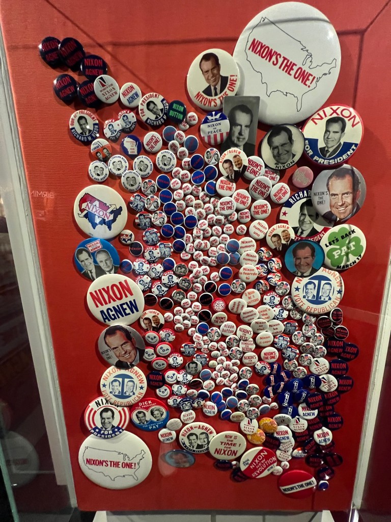 I admit that part of my attraction to the Nixon Library is nostalgic. Also, it is a reminder that we can overcome dark times. My husband and I grew up in completely different political environments: I grew up in a household where Tricky Dick was the devil and John’s parents described themselves as Goldwater Republicans who loved President Nixon. I don’t think my mother-in-law ever quite forgave John for becoming a registered Democrat. Both families were glued to the television during the Watergate hearings.