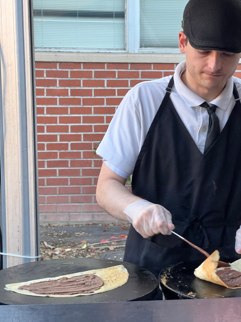 Last night we attended the first evening of Fullerton College’s annual two-day French Film Festival. We tried it on a whim and wow! We had a fantastic experience. The students and faculty put together an impressive event. Prior to the screening of the 2022 movie The Innocent, the festival offered a great taste of French culture with: freshly made Nutella crepes, French doughnuts and other yummy tidbits. As we sat outside on a beautiful spring evening, we enjoyed a variety of French music while everyone hosting wore fun berets made by the students.
