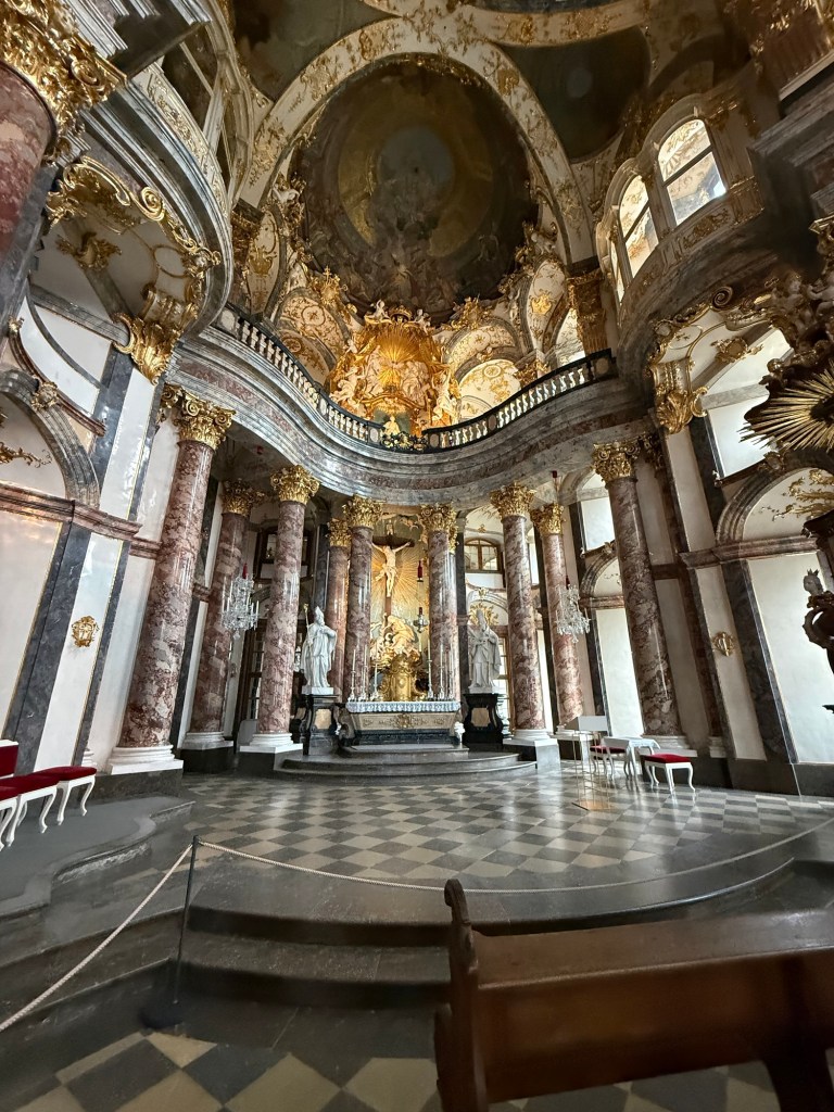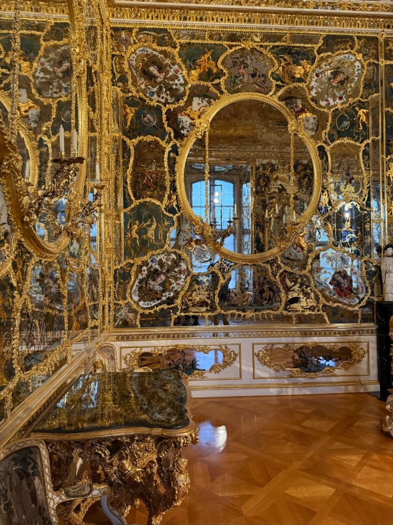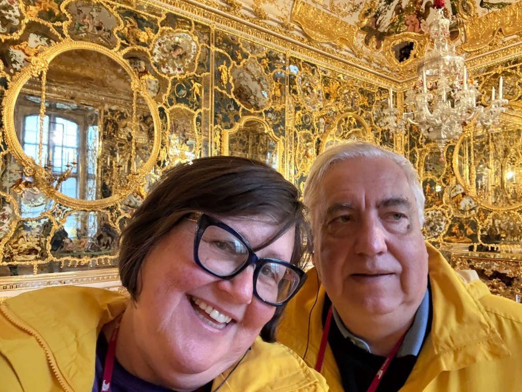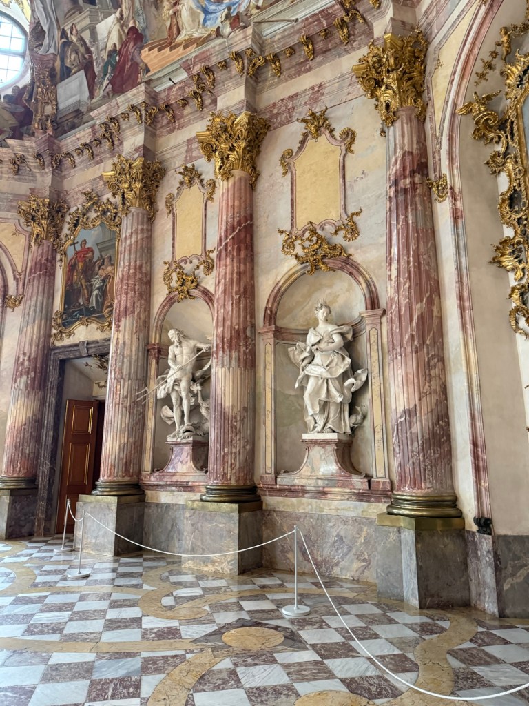 Like Nuremberg, the town was heavily bombed during WWII. Much of the area was rebuilt post WWII. Our first stop today was the Bishop’s Palace. Several of the rooms are original but much of the palace had to be restored after the war – including the Hall of Mirrors. The Palace has an exhibit that goes into the details of restoring the palace. The locals take tremendous pride in the palace and boast that it is more impressive than Versailles. Having visited Versailles, I disagree with the locals but this is a very impressive palace.