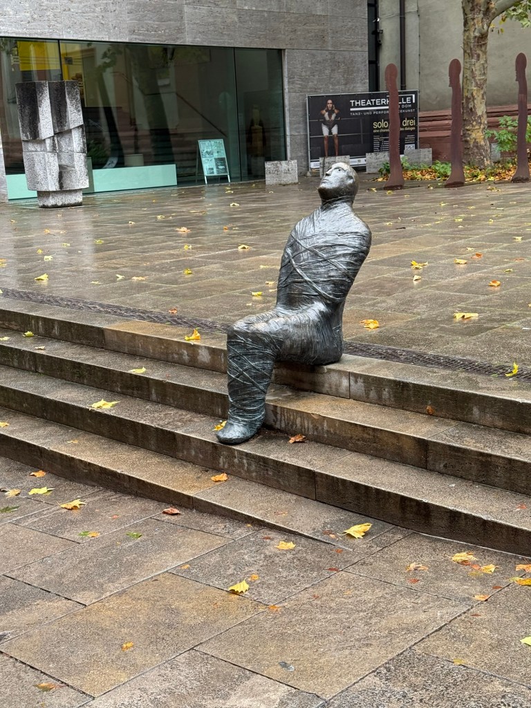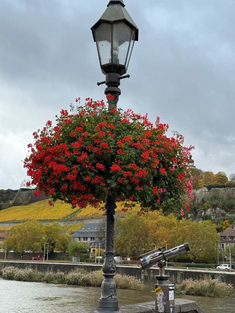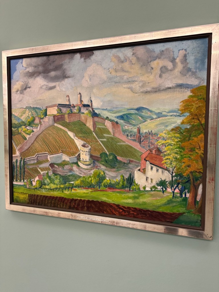 Front Entrance and Fountain at the Bishop’s Palace At the Bishop’s Palace Venetian Glass Chandelier from Murano IslandBishop’s Palace Hall of Mirrors Hall of Mirrors Hall of Mirrors Bishop’s Palace Top of the Main Staircase at the Bishop’s Palace Main Staircase at the Bishop’s Palace Bishop’s Palace Garden at the Bishop’s Palace Garden at the Bishop’s Palace Garden at the Bishop’s Palace Garden at the Bishop’s Palace Garden at the Bishop’s Palace The Great Seated ManDouble Bell Tower Center City Bakery Center City TramThe Pre-Christmas Market Has Started Old Wine Bar Marienkapelle Gothic Church Fun “Refueling” Stop Near the Bridge Local Cafe on the Bridge Center Ciy Fountain Local Grocery Store View of Original Bishop’s Palace and Grape VinesView from the Bridge Wine Bar on the Bridge The Bridge View from Canal Walkway Locks left in Memory Museum im Kultur Speicher Inside the Museum Inside the Museum Painting by Joseph Oppenheimer of the Hall of Mirrors at the Bishop’s Palace Painting of the Old Bishop’s Palace and VinesOld Main Bridgehead at Wurzburg Modern Painting at the Museum