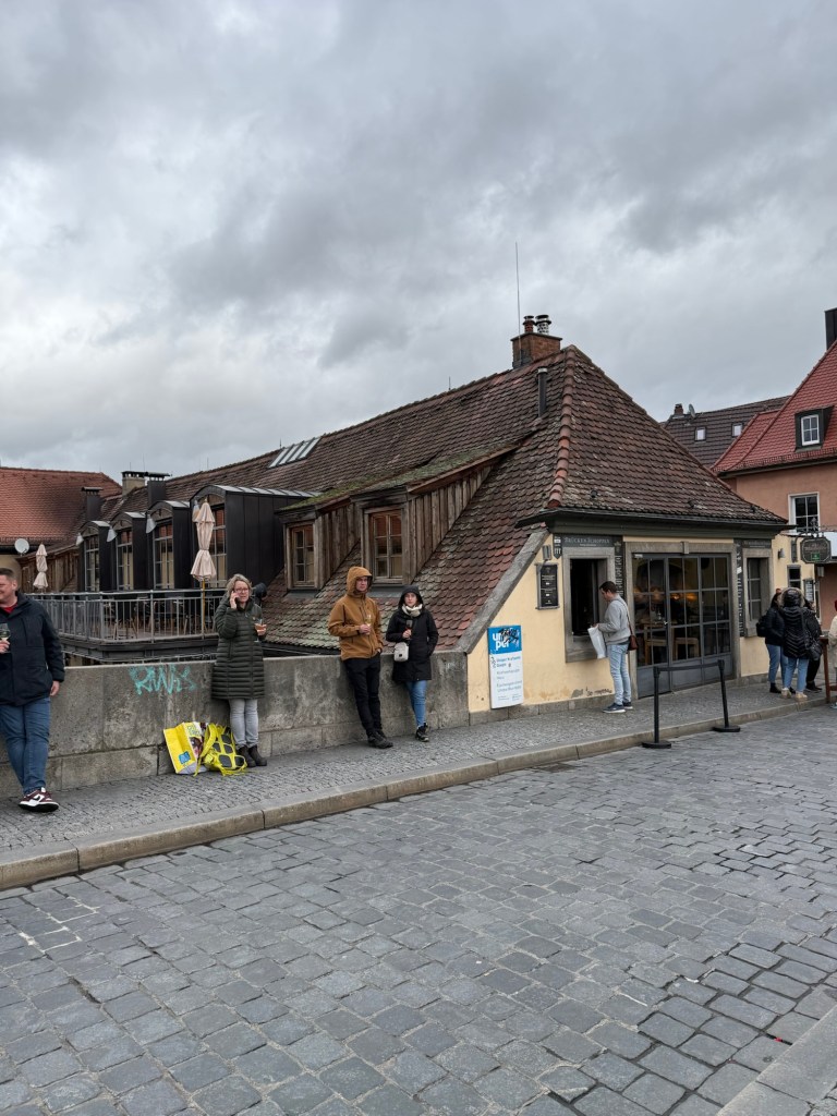 Founded in the 11th century, Bamberg is the most picturesque town in Germany with medieval architecture. It managed to escape the Allied bombs during WWII so it really is like stepping back in time. It is a small town with approximately 80,000 people. The university and tourism essentially support the town. There are a nice variety of stores and restaurants but, interestingly, there is only one tourism store that sells post cards and other typical tourist items.